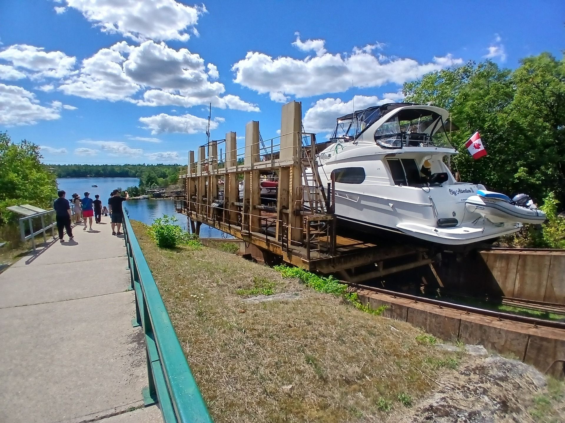 After a relaxed lunch at the nearby marina café, we spent the afternoon watching boats rise from the water and roll overland on rails — part of the legendary Trent–Severn Waterway, which links Lake Ontario to Georgian Bay.