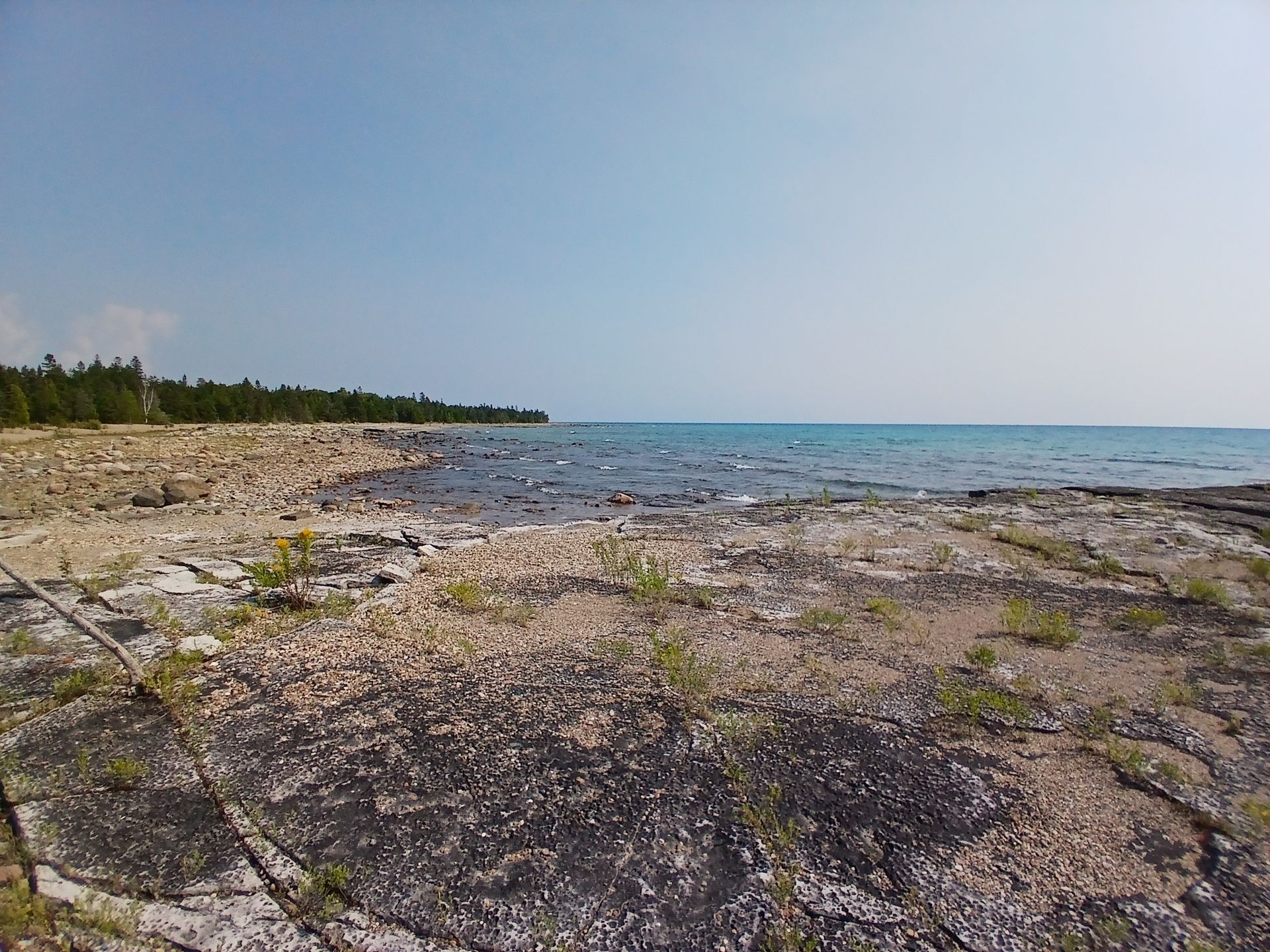 Tags: 🌊 Crystal-clear shoreline • 🪨 Fossils & cedars • 🌲 Remote beauty