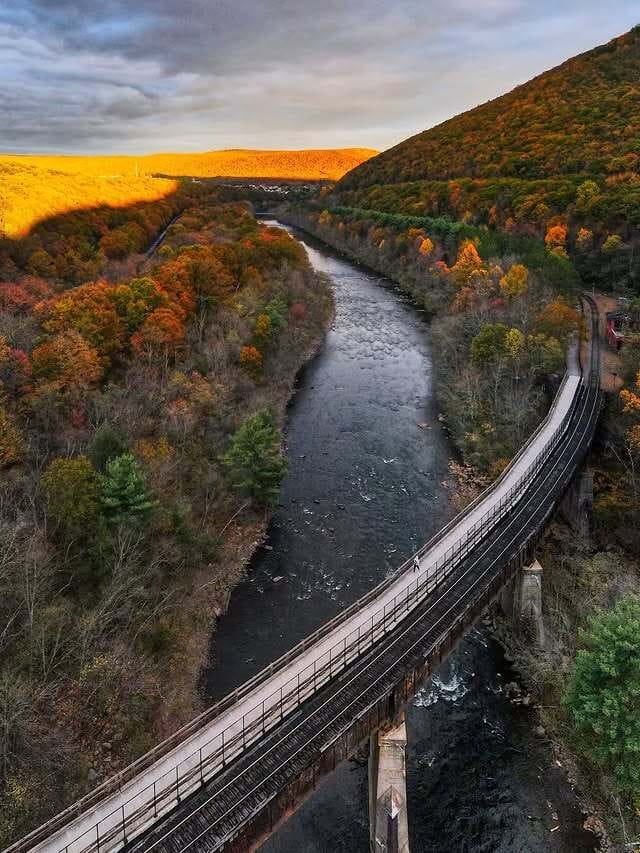 Why here in autumn: a river gorge wrapped in fiery reds and golds, smooth rail-trail cruising through classic Pennsylvania scenery.